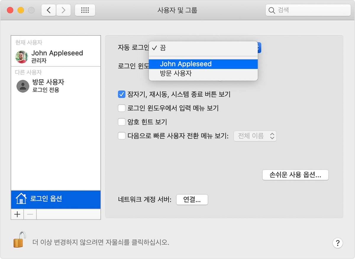 Mac이 시동 중 자동으로 로그인하도록 설정하기