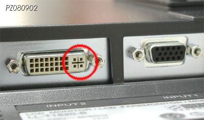 이렇게 아날로그 신호핀이 막혀있는 모니터나 그래픽카드에는 - DVI-D 단자가 있는 모니터와 그래픽카드의 경우에는 - DVI-I 케이블을 사용할 수 없으며, 때문에 자신의 그래픽카드와 모니터의 DVI-D 어뎁터에 4개의 핀 Hole이 막혀있는지 뚫려 있는지 확인해야 합니다.